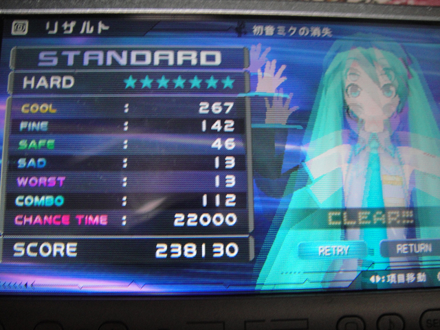 プロフィールにも書いてある通り、最近初音ミク project DIVAってのにハマってます。音ゲーとしてはかなりシンプルで、単純に音ゲーとして楽しもうとすると2日くらいで飽きると思います。まあ、あれですよ。いくらFF12がツマラナイと聞いても、スクエニファンやFFファンだったらやっぱり買っちゃいますよね?それと一緒です、ハイ。ポピュリズムです。